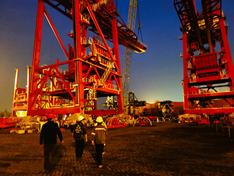 夜間作業(yè),黨員帶頭保交付。近期,公司有5個項目共9臺設備在大新碼頭同時進行整裝調(diào)試。為保證項目順利交付,港機黨支部黨員充分發(fā)揮模范帶頭作用,帶領員工加班加點、不分晝夜推進設備安裝調(diào)試工作。針對夜間作業(yè),港機黨支部以黨建促安全,牽頭成立夜間安全巡邏隊,對項目現(xiàn)場各個角落進行認真細致地巡邏檢查,推動作業(yè)區(qū)安全監(jiān)督和管理,確保順利完成全部設備的整體發(fā)運工作。
